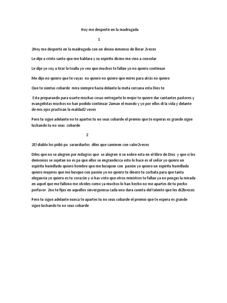 Watch premium and official videos free online. Alabanza hoy le desperté en la madrugada cover. Para simplificarlos, puedes cambiarle la tonalidad, bajándole un semitono y utilizando un capotraste o liguilla en el traste número 1 y así mantienes el sonido original de la canción. Hoy me desperté en la madrugada. Is your network connection unstable or browser outdated? Cover hoy me desperte en la madrugada valentina perez jc. Click start and download the file from converted video hoy me desperté en la madrugada to your phone or computer once the conversion. La madrugada musica cristiana letra hoy me desperte en. Hermosa alabaza hoy me desperte en la madrugada. Please download one of our supported browsers. Hoy me desperte en la madrugada. Felicitaciones ya puede descargar hoy me desperte en la madrugada en mp3 totalmente gratis. 0 0 about 1 year ago.